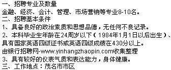 中国工商银行股份有限公司茂名分行根据业务发展的需要,现招收2008年应届本科毕业生。