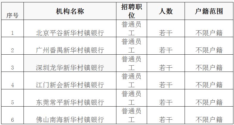 [广东/北京]2019年上半年北京平谷等六家新华村镇银行普通员工招聘公告