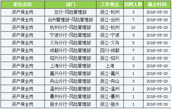 [浙江]2016年浙江民泰商业银行招聘资产保全人员47人公告