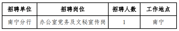 上海浦东发展银行股份有限公司南宁分行成立于2005年10月,是广西壮族自治区党委、政府实施“引金入桂”战略后引进的第一家股份制商业银行。我行视人才为最宝贵的财富,重视优秀人才的培养,为员工提供富有市场竞争力的薪酬福利。根据分行发展需要,现面向社会公开招聘党务及文秘宣传岗工作人员,热忱欢迎有志投身浦发事业的精英加盟!