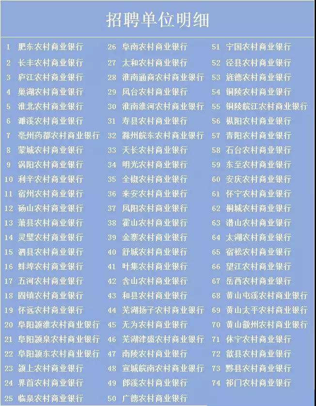 安徽农村商业银行系统根据发展战略与业务拓展需要,现面向社会诚邀精英加盟,热忱欢迎各界人士踊跃报考,我们将提供有竞争力的薪酬福利待遇和广阔的发展晋升平台。