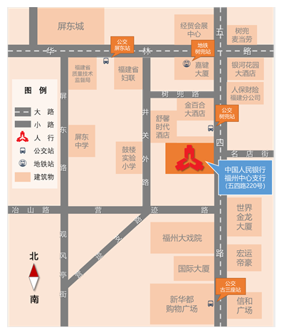 中国人民银行福州中心支行办公大楼(福州市鼓楼区五四路220号,地铁树兜站C出站口向南100米或五四路西侧公交树兜站向南20米,详见附件地图)