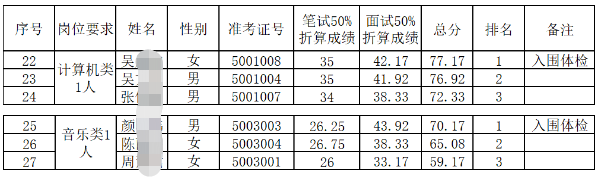 3.体检具体时间、地点另行通知,请入围面试的考生务必保持手机畅通,关注微信群通知。