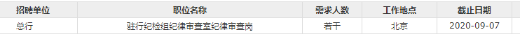 [北京]2020华夏银行总行驻行纪检组招聘公告
