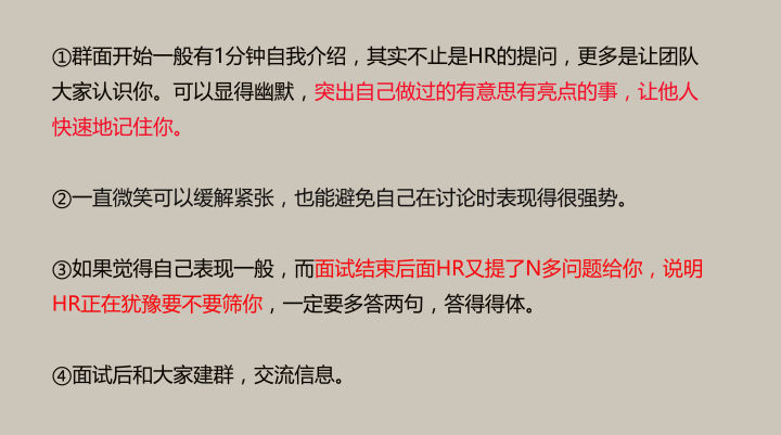 困扰新手的应该是角色分配问题,群面角色的一般分为Leader、第二Leader、Time-keeper、记录总结员、普通成员等。