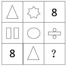 【东吴教育解析】此题考的是数量关系,每行前两个图形的封闭区域之和等于第三个,第一行封闭区域分别是:1、1、2,1+1=2,第二行封闭区域分别:2、1、3,2+1=3;第三行封闭区域分别是:2、1、(3),需选出有3个封闭的选项,正确答案选C。