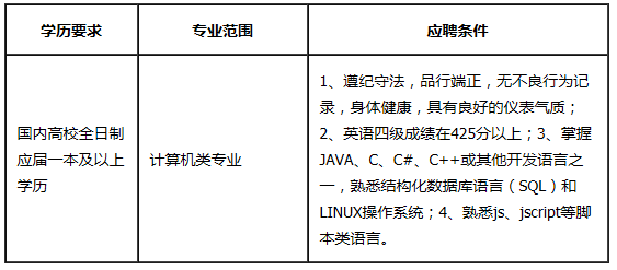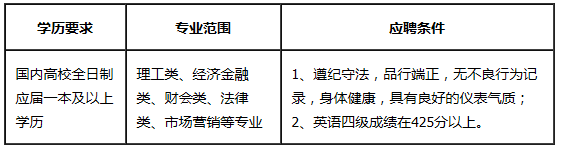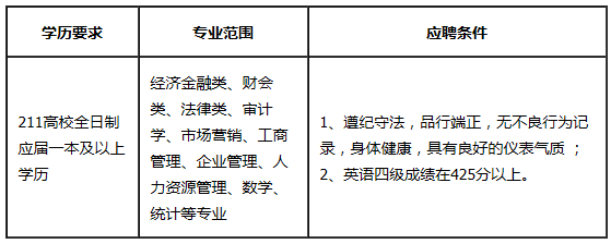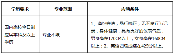 (二)专业要求为主修专业,应聘者只能报考一个岗位;毕业生能在2019年8月底之前取得毕业证、学位证、报到证;