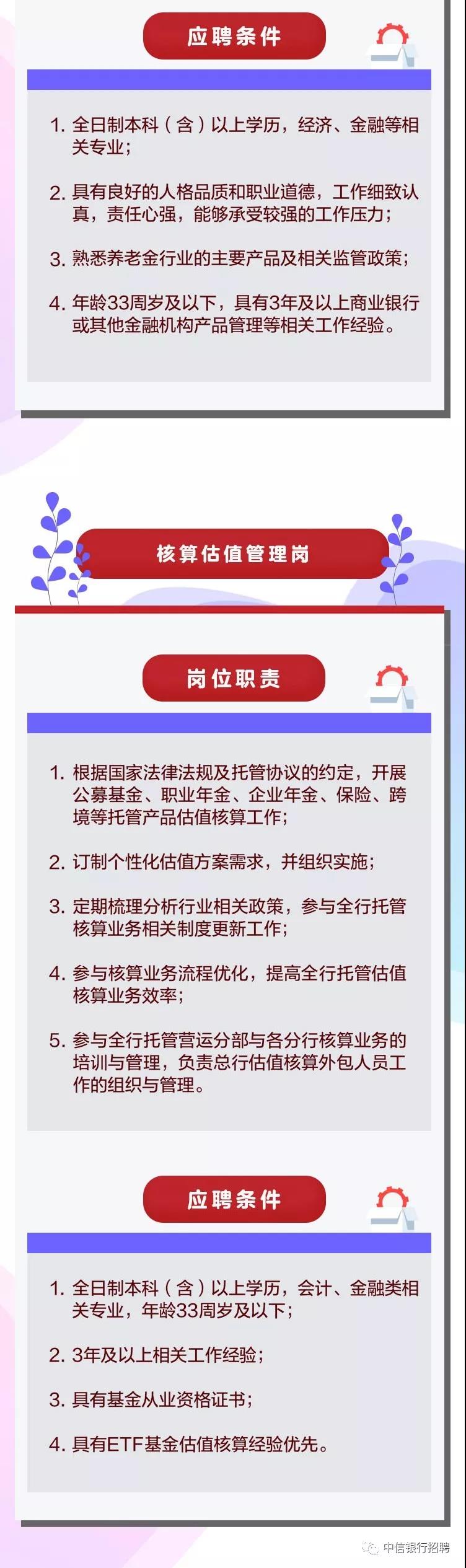 > [北京]2019中信银行总行资产托管部社会招聘公告